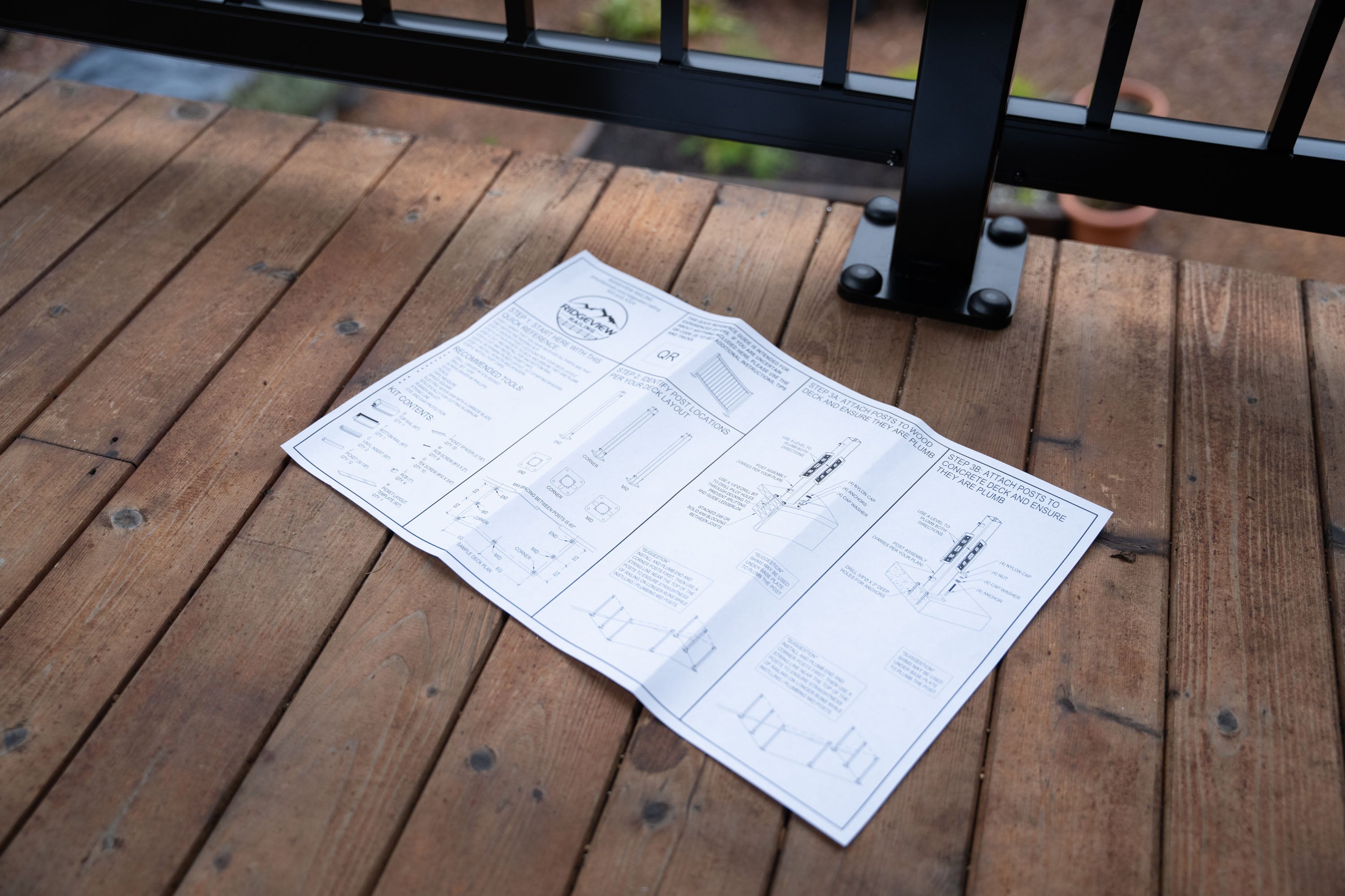 The kit includes an installation guide complete with instructional videos that walk you through the installation of your new railing and provide tricks and tips to ensure a smooth installation. Get a premium, low-maintenance railing system that looks great and stays strong, all for an affordable price with Ridgeview Railing™.